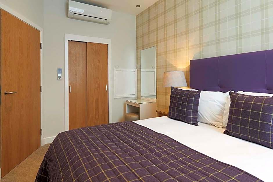 This apartment is located on the lower ground accessible via stairs only. It has high level windows, one bedroom and a separate living space. The bathroom has either a shower or bath with overhead shower. There is a TV in both the living room and bedroom areas.